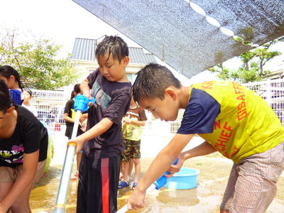 みんなで的を狙ったり、水のかけあいをしたりしました